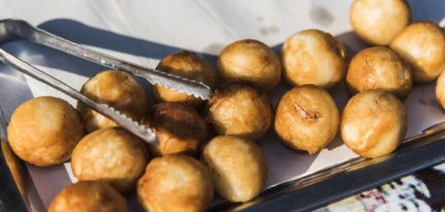 - تقطيع العجينة إلى اثنا عشرة قطعة، ومن ثم تشكيل كل قطعة إلى كرة ملساء.