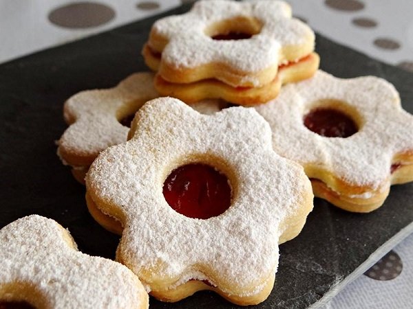 - نترك البيتيفور حتى يبرد تماماً ثم نمد المربى على النصف الأول من البيتيفور ونغطيه بالنصف الآخر بحيث يظهر المربى من المنتصف .