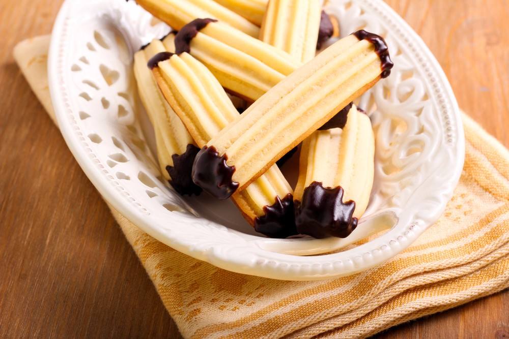 - يوضع جانباً ليبرد، ثم يغمس أحد جوانبه في الشيكولاتة، ويترك ليتماسك.