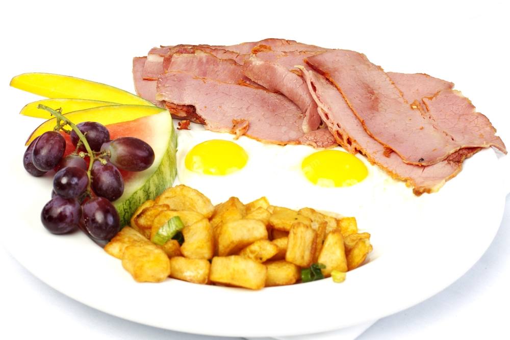 يقدم البيض مع الخبز المقلي و البسطرمة و يتبل بالملح و الفلفل .