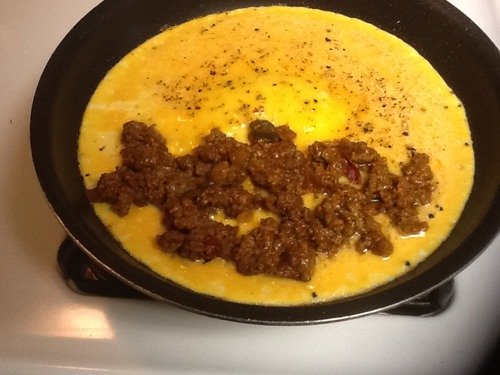 طريقة عمل بيض مقلي باللحمة المفرومة للفطور :