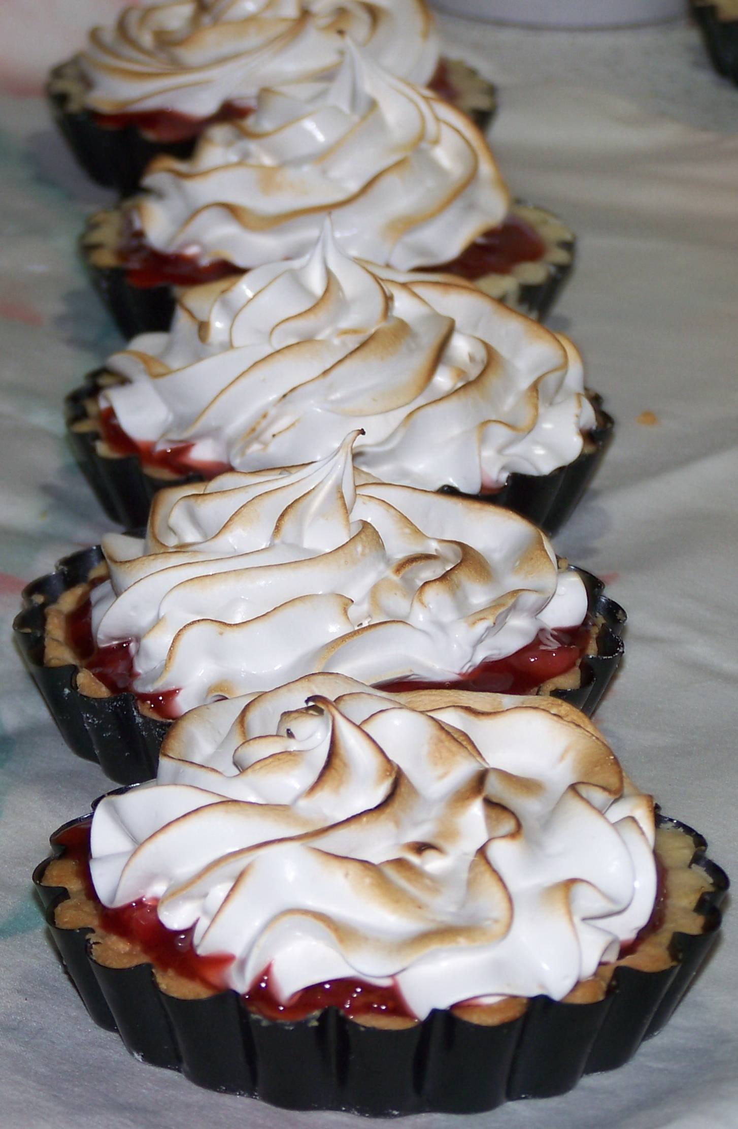 - توضع المربى في تارات المعجنات بالتساوي ويوضع عليها المارنج وتُخبز في الفرن حتى تحمر.