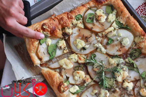 - اخبزي التارت في فرن درجة حرارته 200°C، لــ 7 -9 دقائق، ثم اسكبي مزيج الإجاص فوق العجين، رشي الجبنة، وعند الرغبة افرشي الجوز المفروم.