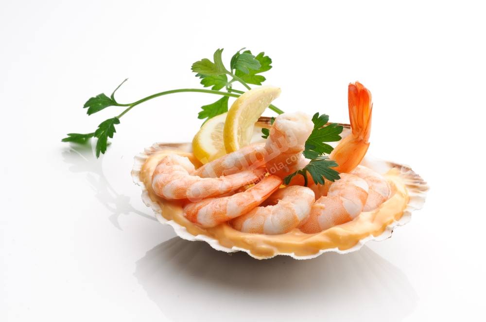 - في مقلاة نضع البصل مع قليل زيت ثم نضيف صلصة الطماطم و البهارات و الجمبري المسلوق .
