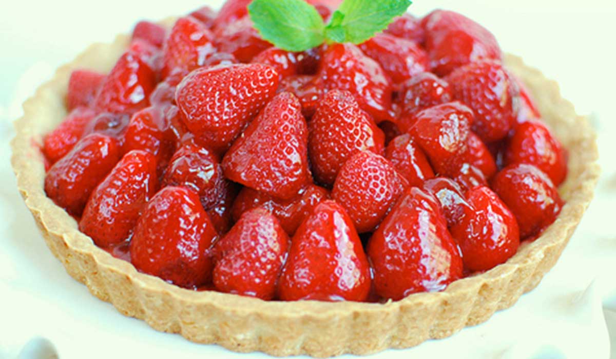 - 10 نترك التارت في الثلاجة حتى تبرد ثم نزينها بقطع الفراولة، وتحتوي كل حصة من التارت على 170 سعر حراري.