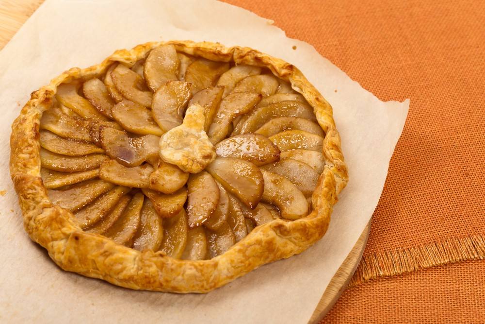 - ضعي العجينة على الكمثرى ثم قومي بثني اطراف الكمثرى للداخل حول الكمثرى.