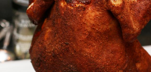 - نضع في صينيّة الفرن خبزاً، والقليل من التتبيلة في القاع، ونضع فوقها الدجاجتين، ومن ثمّ ندخلها إلى الفرن حتى تتحمّر، وتنضج مدّة عشر دقائق.