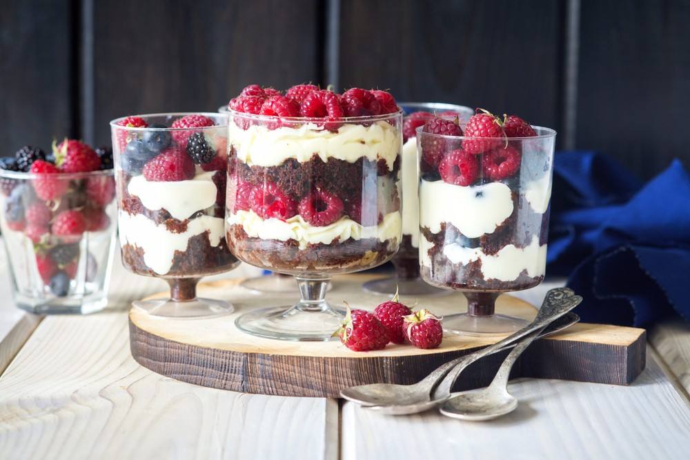 - احضري كاسات التقديم ثم ضعي بها مكعبات من الكيك ثم قطع الفواكه.