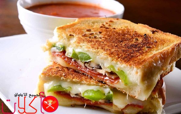 - نضع الساندويش في الفرن الحامي حتى تذوب الجبنة تماماً وبذلك يكون تشكن بيتزا ساندويش جاهزاً للتقديم .