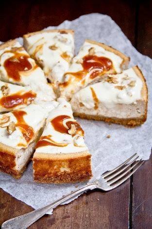- في وعاء على النار سخني السكر الاسمر على النار و عند بدء غليانه أضيفي كريمة الخفق والزبدة و قلبيه جيداً. صبي صوص الكراميل فوق التشيز كيك بخطوط دائرية عشوائية و يرش فوقة المكسرات ويقدم .