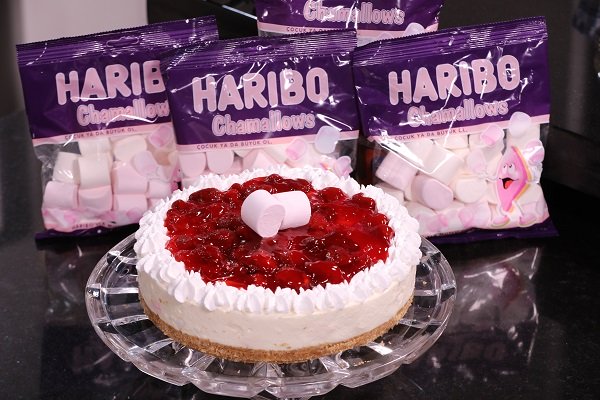 تشيز كيك بالمارشميلو طريقة جديدة تتميز بإضافة مارشميلو هاريبو شملوز الطرية واللذيذة إضافة الى مكونات التشيز كيك البسيطة كالبسكوت والزبدة والجبنة الكريمية والحليب وغيره، وصفة مميزة يمكنك سيدتي تقديمها لضيوفك مرفقة طريقة التحضير الشهية
