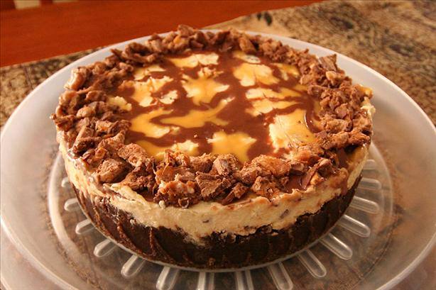 - يخلط النصف الآخر من خليط الجبنة مع 3 حبات كبيرة مارس مذوبه على البخار أو المايكرويف ثم تضاف فوق القالب.