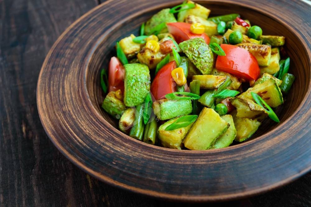 - ثم أضيفى الكوسة و الذرة و حمريهم لمدة 5 دقائق أو حتى يصبحون مقرمشين بطراوة .