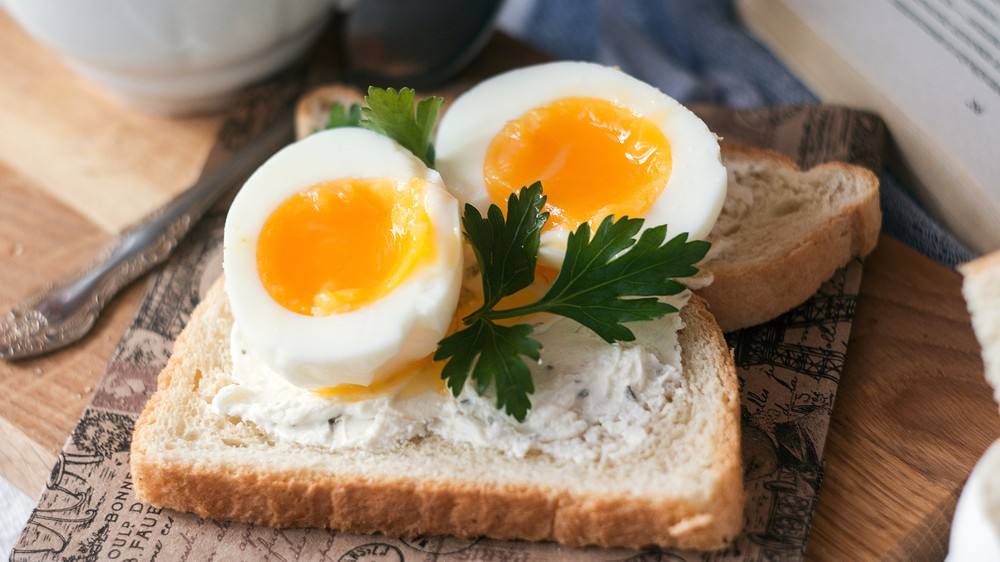 - يدهن التوست بالجبنة، ويوضع فوقه البيض.
