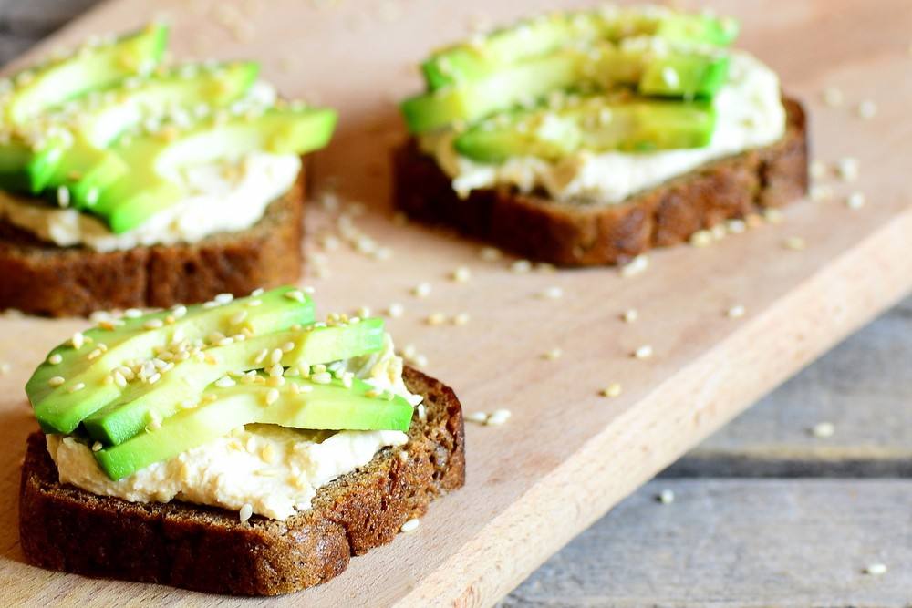 - يدهن التوست بسلطة الحمص، ويوضع فوقه شرائح الأفوكادو.