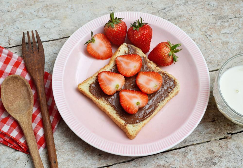 - يدهن التوست بالنوتيلا، وترص فوقه شرائح الفراولة.