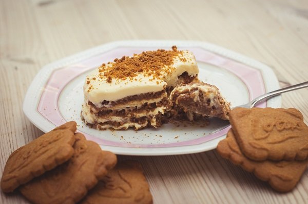 تيراميسو ببسكويت اللوتس وصفة تحتوي على طبقات من بسكويت وزبدة اللوتس بالإضافة للمزيج الكريمي الغني بمذاقه وبذلك تجتمع النكهات التي يعشقها الجميع في حلى واحد سهل وسريع .