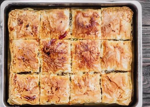 - تدهن الصينية بالسمن، ويوضع فيها نصف كمية الجلاش مع ضرورة دهن قليل من السمن بين طبقات الجلاش.