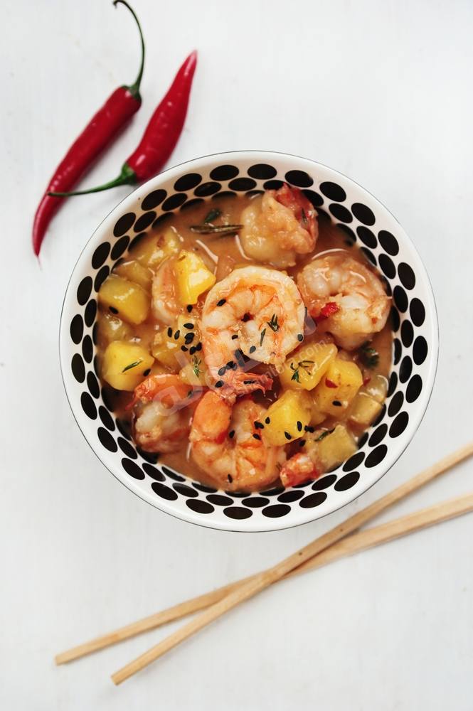جربى معنا طريقة عمل روبيان بالأناناس بالطريقة الصينية حلو وحار ، وإليكِ طريقة عمل جمبري بالاناناس.