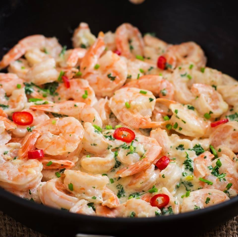 الجمبري (أو الروبيان) بالكريمة والثوم من الأفضل الأطباق لمواجه النحافة ،فهو طبق مغذي ودسم يساعد على زيادة الوزن كما يحتوي على عناصر غذائية اخرى تساعد على تحسين الصحة الجنسية والمحافظة على الخلايا وتطويرها