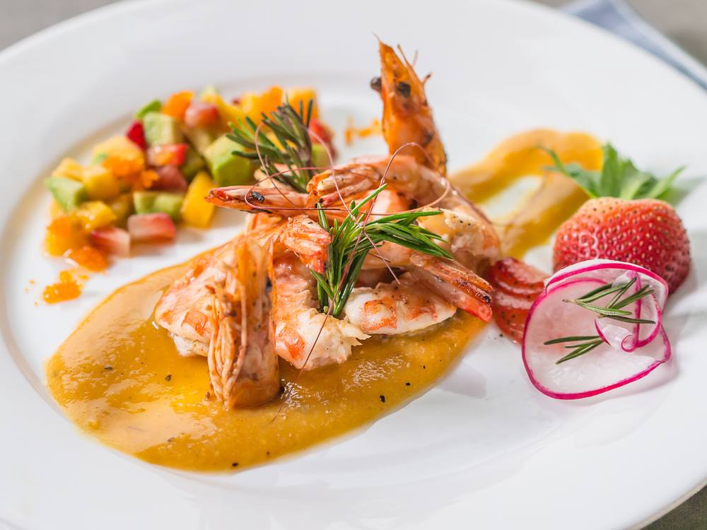 تحضير جمبري مشوي مع صلصة الفواكه الاستوائية