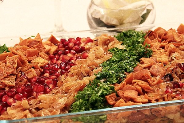 - يمكن تقديم الطبق ساخن أو بارد أو بدرجة حرارة الغرفة . نضع الحراق بإصبعو في طبق التقديم ونزين بمزيج الكزبرة والثوم ونزين بالبصل المقلي والرمان والخبز المقلي .