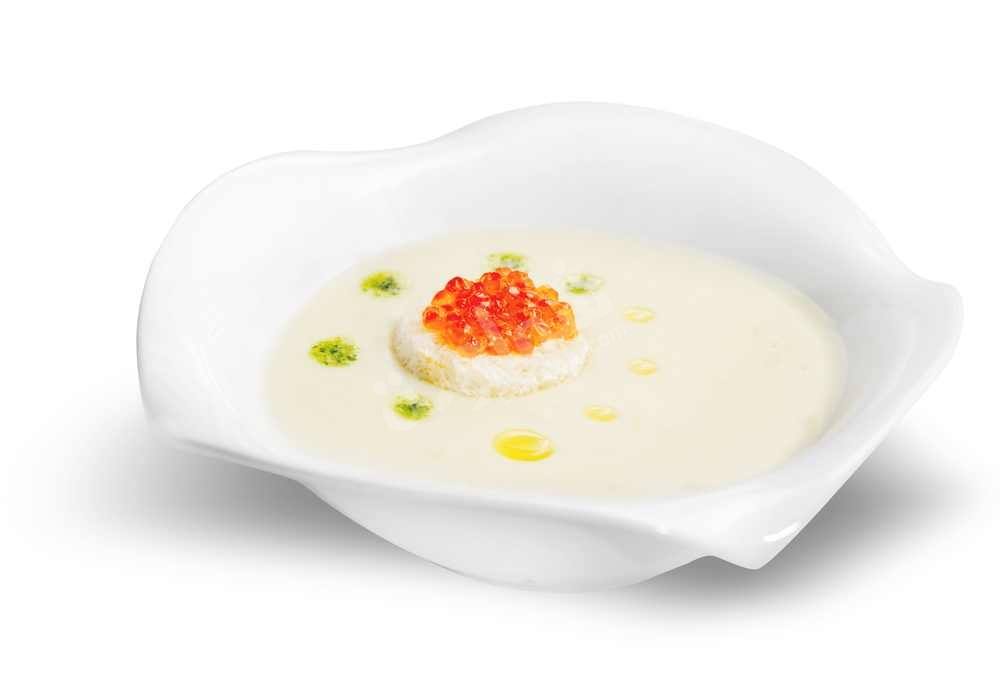 تحضير حساء الإسبراجس البارد مع الكافيار