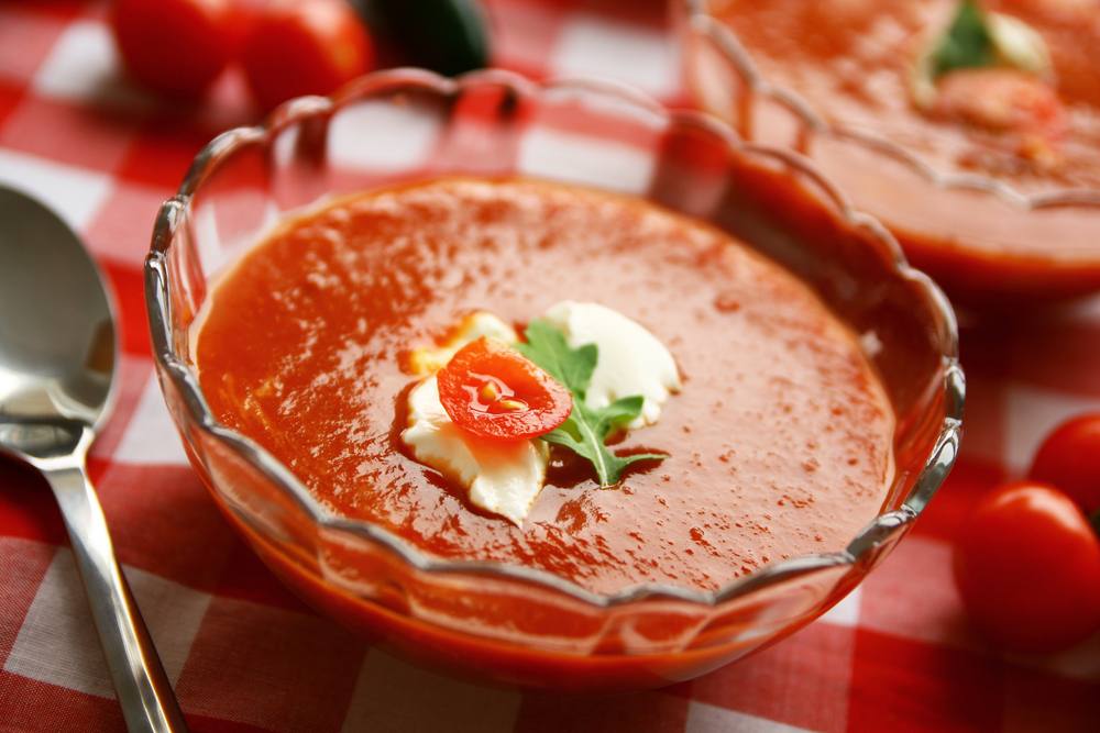 تحضير حساء الطماطم والفلفل المشوي مع شرائح التورتيلا