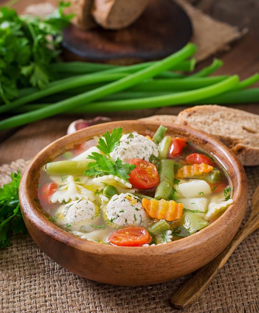 ضعى على مائدتك فى العيد حساء مميز غنى بالمكونات و البروتين إليكى سيدتى  حساء المكرونة و الخضراوات و كرات اللحم ذو المذاق المميز الرائع و إليكى الطريقة  .