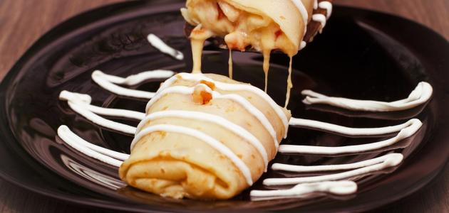 - حشو الكريب بخليط العسل والكريمة، ثم إضافة خليط الفواكه إليه، وبعدها لفه على شكل رولات.