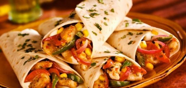 - نضع التورتيلا في صحن لائق للتقديم، ونضع بجانبه المايونيز والشطة، بالإضافة إلى مجموعة متنوّعة من المخلالات، وأنواع مختلفة من السلطات.