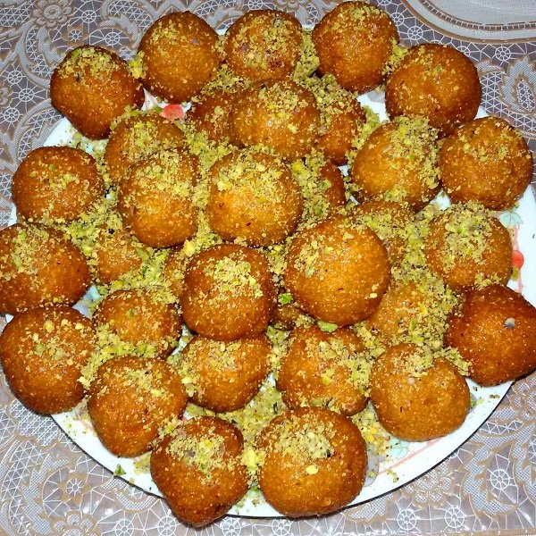 - نصب عليها القطر ونزينها بالفستق الحلبي.