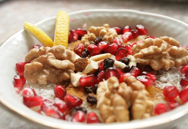 حلى اشورة (عاشوراء) التركي Aşure يتميز بمذاقه اللذيذ وفوائده المتعددة فهو طبق مغذي يحتوي على القمح الغني بالعناصر الغذائية التي تقوي مناعة الجسم والألياف التي تحافظ على صحة الجهاز الهضمي كما أن المكسرات فيها مواد مضادة للأكسدة والفواكه المجففة تعالج فقر الدم وغير ذلك الكثير من الفوائد وها هي الطريقة الأصلية لعمل هذا الطبق المغذي واللذيذ .