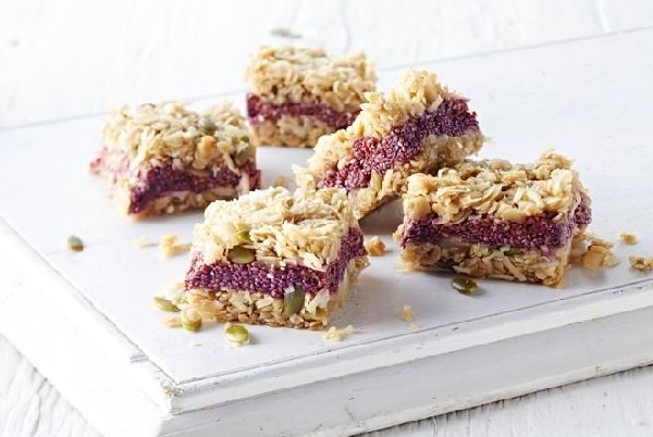 - اسكبي بالملعقة نصف المزيج في الصينية المجهزة، وبيدين رطبتين اضغطيه ليكون متساوياً، ضعي فوقه مزيج التوت ومدديه بالتساوي بالملعقة، اسكبي فوقهم مزيج الشوفان المتبقي. وبيدين رطبتين اضغطيه بالتساوي، ثم اخبزيه لمدة 50 دقيقة او حتى يصبح لونه ذهبياً.