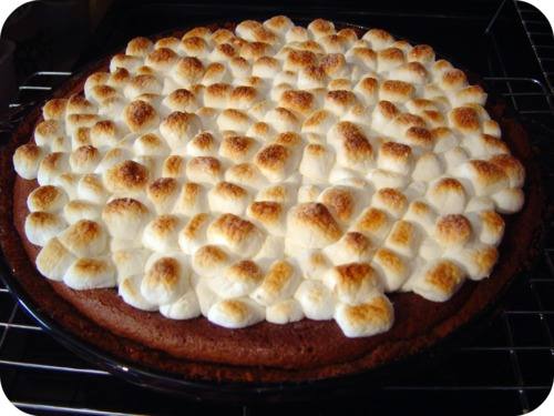 - إدخلي المقلاة إلى الفرن لمدّة 8 دقائق حتى يصبح وجه المارشميلو بنياً.