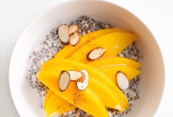 حلى المانجو البارد طبق صحي للإفطار، للتغيير عن الوجبة المألوفة، سهل التحضير، بسيط، وغني بالمواد الغذائية الرائعة لبدء يوم جيد بها ، و مناسب للحمية و حرق الدهون .