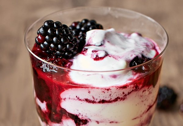 - اخلطي الزبادي و1 ملعقة صغيرة من السكر المتبقي، ثم حركي التوت معهم.