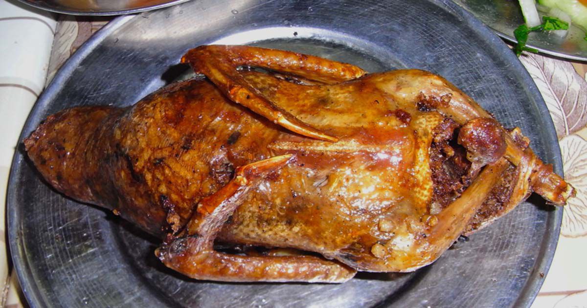 5- إحشي رقبة الحمام بالفريك ثمّ أغلقيها وثبّتيها بعود خشبي صغير. إحشي البطن والمنطقة بين البطن والجلد واحرصي على عدم اللإفراط بالحشو حتى لا يتسرب الفريك إلى الخارج خلال الطبخ.