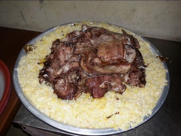 - عند ينضج اللحم نسكبه في وعاء التقديم ويقدم بجانبه طبق الأرز.