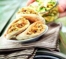 3. افتحي الخبز من أي جانب ثم ضعي كمية من الخليط وهكذا إلى أن تنتهي الكمية .