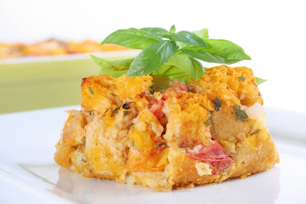 - يسخن الفرن إلى 180 درجة مئوية ويقطع الخبز شرائح بالعرض 3 سم مع ترك 1.5 سم من أسفل رغيف ونكرر عمل قطوعات متماثلة في الإتجاه المعاكس و يقطع الجبن إلى 1/2 سم شرائح و تقطع شرائح إلى قطع صغيرة و يوضع الجبن في المنخفضات .