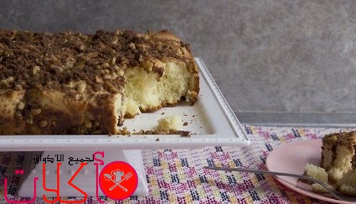 - ترفع من الفرن وتقلب على طبق التقديم بحيث تكون الطبقة الخارجية على السطح.