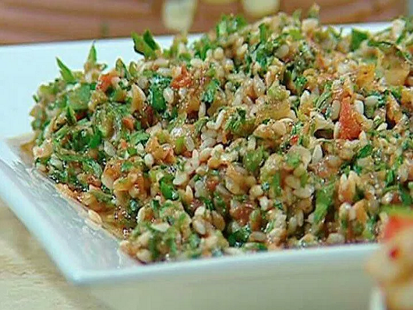 - ونضيف إلى الخليط البقدونس والكزبرة والشبت والنعناع ونتبله بالملح ومكعب الدجاج والتوابل العربية ونقلبه جيدًا مع الأرز حتى يندمج الخليط مع بعض.