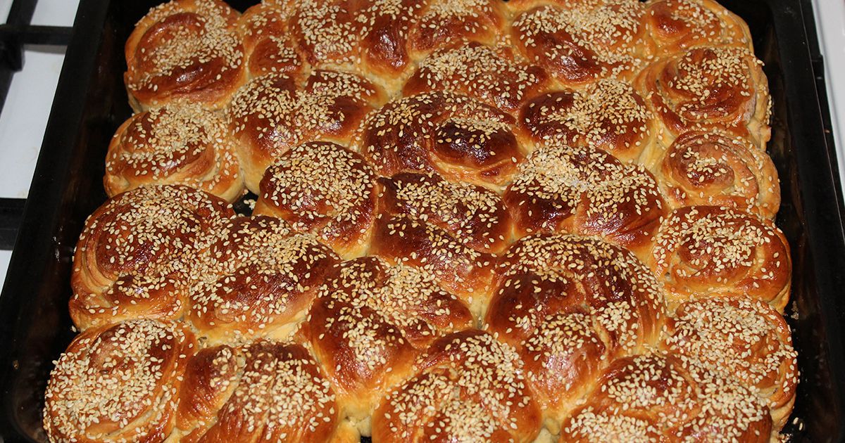 10- رشي السمسم على وجه كرات العجين وأدخليها الى فرن محمى على حرارة 200 درجة مئوية حتى تنضج ويتحمر وجهها