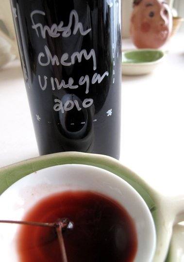 - يقلب الخل والكريز في إناء كبير زجاج محكم الغلق ويرتك في درجة حرارة الغرفة لمدة يومين .