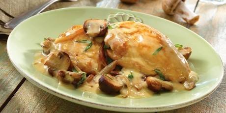 - يضاف الدجاج و يقلب حتي يقرب النضج ثم يغطي الوعاء حتي تمام النضج .