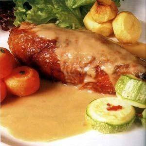 - ذوبي مرقة الدجاج بكوب من الماء و صبيه على الدجاج و حركي .
