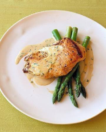 - تصب أي عصائر الدجاج المتراكمة من حفظها في مكان دافيء في الصلصة قبل التقديم مباشرة ، صلصة كريمة على الدجاج.