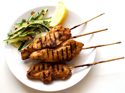 دجاج ساتاي وصفة دجاج شهيرة في جنوب شرق آسيا ، ذات طعم مميز وسريعة التحضير ، حضريها مع صلصة الفستق السوداني وتمتعي بمزيج النكهات الرائع ، وهو من وصفات الدجاج المميزة .