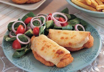 - افتحي صدور الدجاج من أي جانب واحشيها بقطعة الديك الرومي وقطعة الجبن ولفيها واغلقيها جيداً .